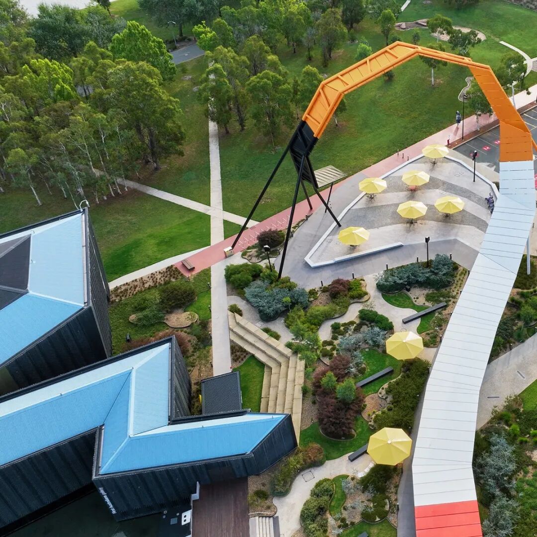 The forecourt contains a series of immersive, informative, gathering and sensory spaces including a ‘Mosaic Garden’ of Australian native plantings suitable for the challenging Canberra environment of hot dry summers and cold, frosty winters.