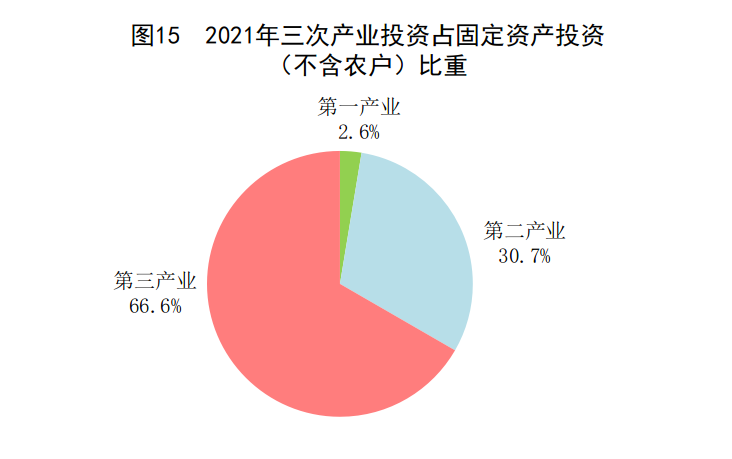 在固定资产投资(不含农户)中,第一产业投资14275亿元,比上年增长9.1%;第二产业投资167395亿元,增长11.3%;第三产业投资362877亿元,增长2.1%。民间固定资产投资307659亿元,增长7.0%。基础设施投资增长0.4%。社会领域投资增长10.7%。