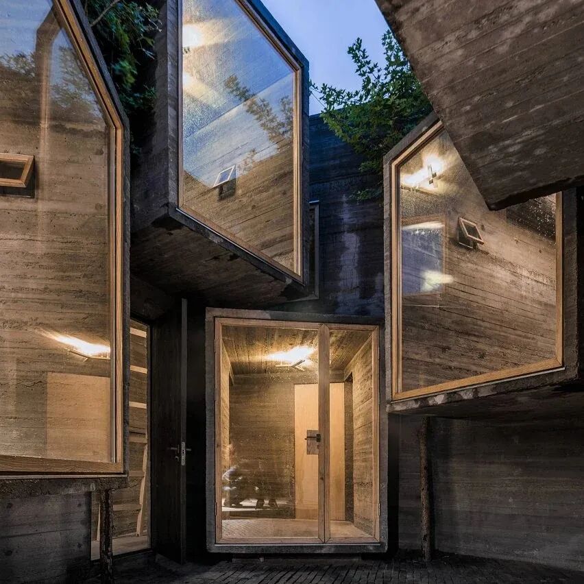 宾馆的灰色调是通过将混凝土与中国墨水混合而成的,参考了胡同的传统灰砖。
