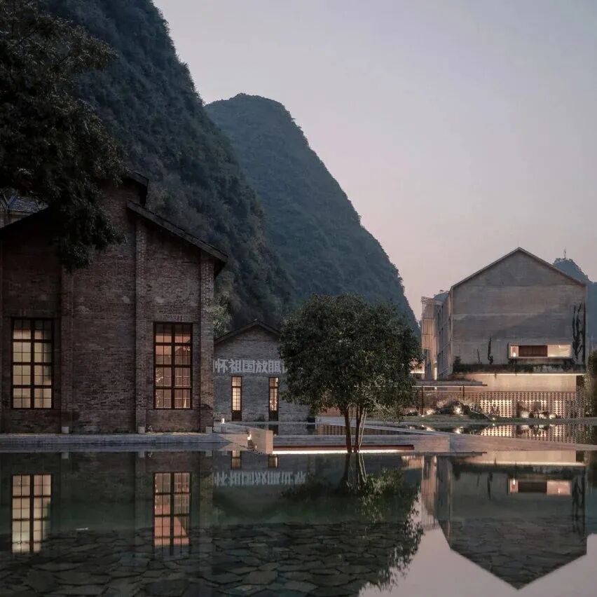 60年代废弃糖厂的工业设施经过改造,在桂林市附近创建了这家酒店。直向建筑对旧砖结构进行了改造和再利用,以创建接待区、餐厅、多功能厅和图书馆,而新的混凝土长方形版本可容纳客人套房。