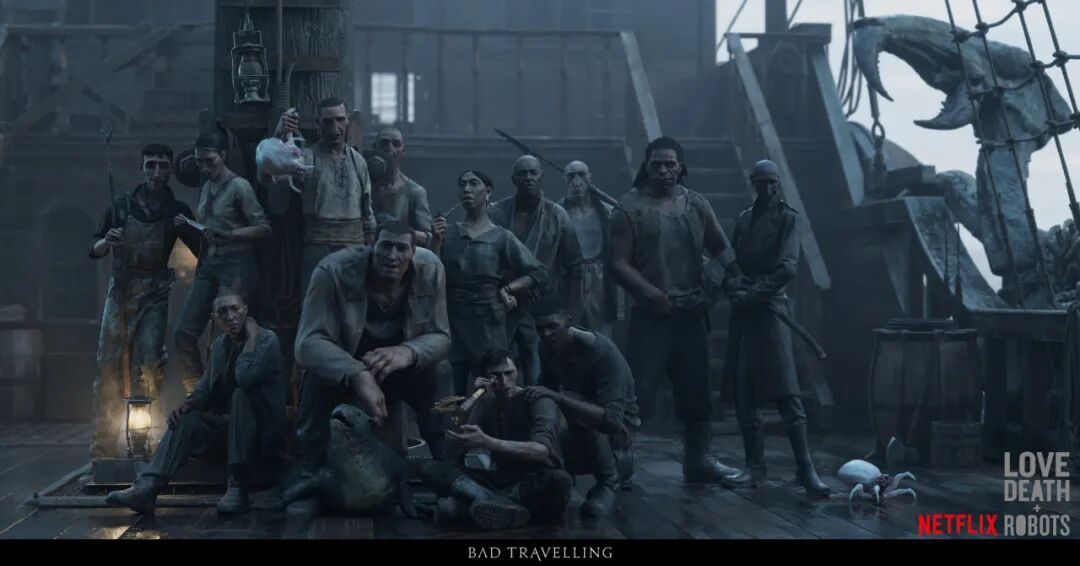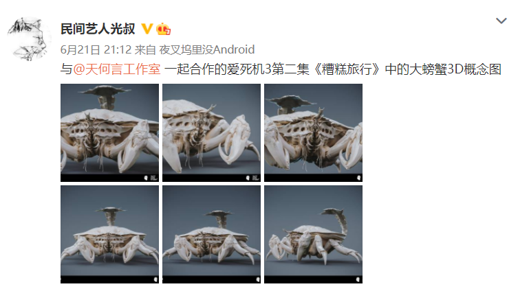 除了第一季的证人导演Alberto Mielgo强势回归外,值得一提的是,在第三季中,知名概念设计师徐天华的天何言工作室担任了《差劲旅行》和《虫群》两部影片整体的视觉设计,共有十几名国人设计师参与其中。