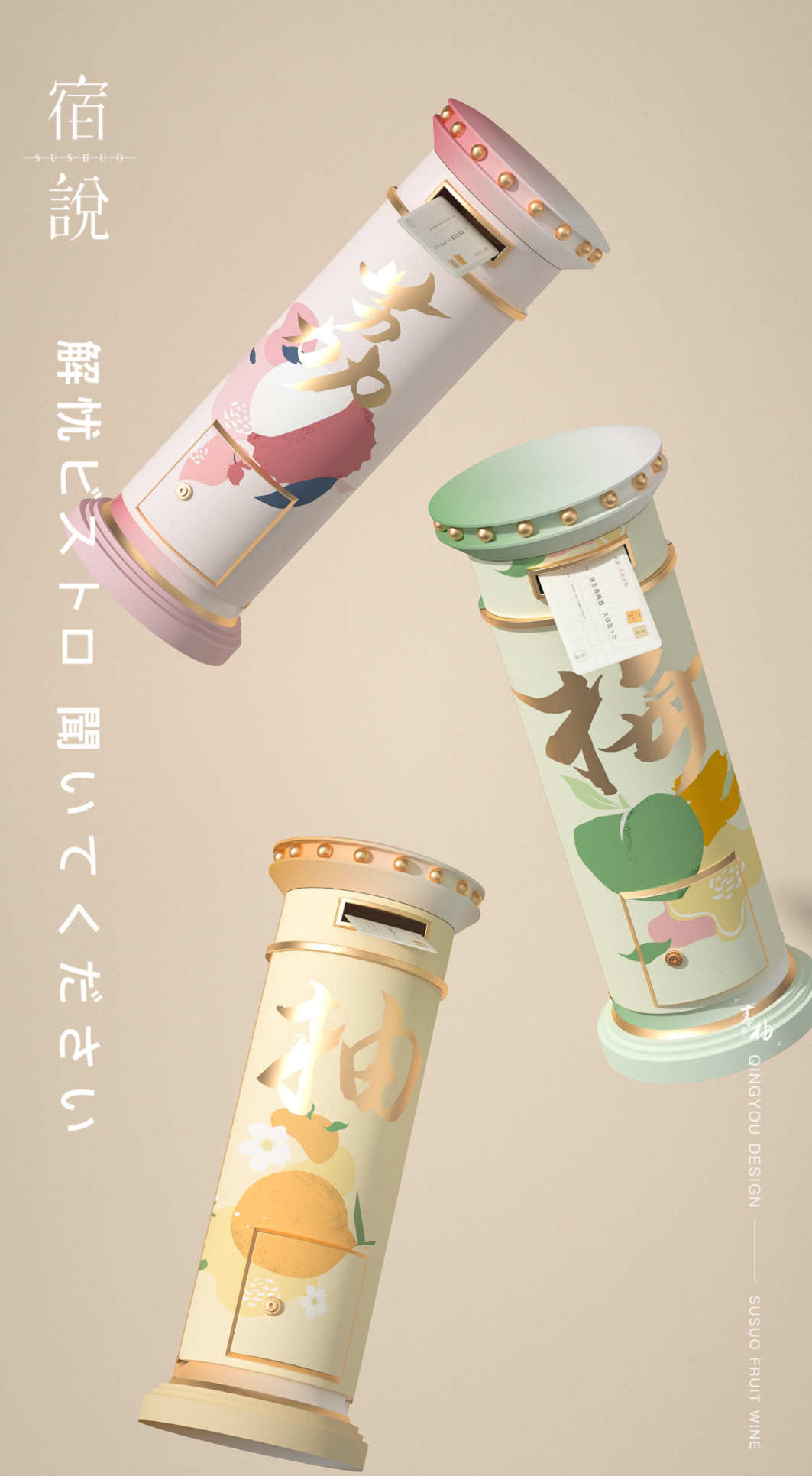 「宿说」果酒是其创始人从日本回到深圳所创立。18年前,创始人远赴日本学习清酒酿造技术及品牌运作。那时没有微信、移动网络,不如现在信息发达,与闺蜜惜别,书信是她们沟通必不可少的工具。从邮筒中取出漂洋过海而来的信件成为其的日常:一封信件很轻,却承载厚厚的思念寄托;一个很旧的邮筒。却寄去崭新的乡愁。
