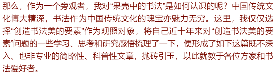 竭诚欢迎各位方家和书法爱好者对作者撰写的《果壳中的书法——试论书法美的基因(纲要)》提出指导、批评意见和建议。