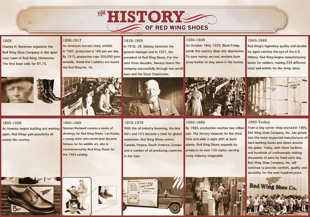 Charles Beckman(查尔斯·贝克曼),带领着当时的 14 名成员,一同建立起了最初的REDWING 制鞋工厂。在工厂建立之初,凭借着敏锐的商业嗅觉,与过人的生意头脑,查尔斯贝克曼非常清楚的了解到:明尼苏达州由于小麦等农作物的产量很高,工人与农民们对于鞋子的需求量和标准,也在不断在提高。