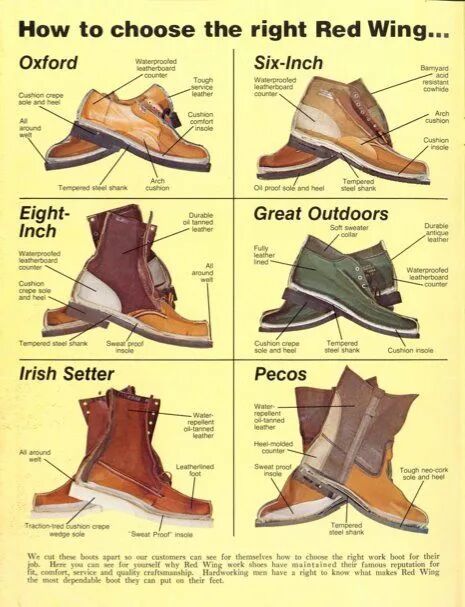 1950-1960s,此时的美国也开始陷入越南战争的泥淖,而 REDWING 的鞋型,也开始逐步的完善