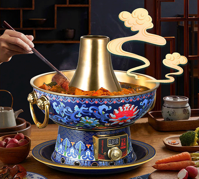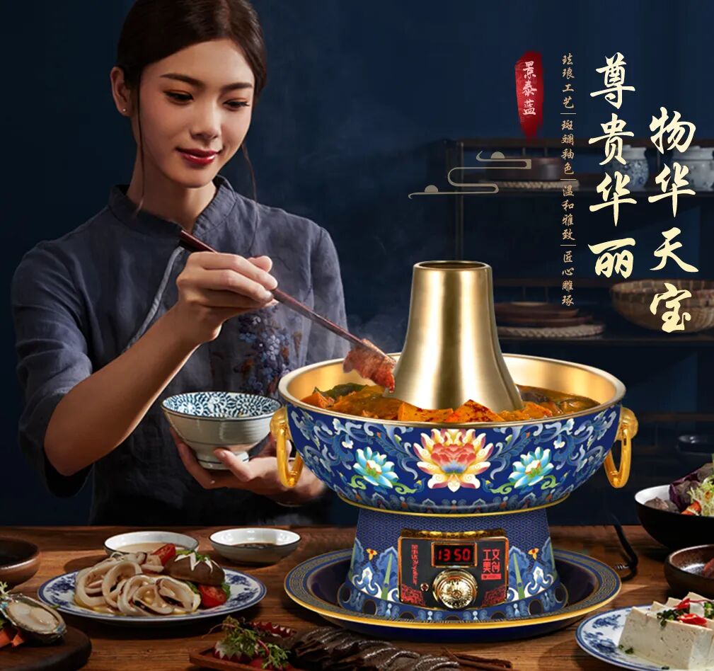 国礼级“景泰蓝”吉祥纹饰,电炭两用铜火锅~在家享用宫廷盛宴!