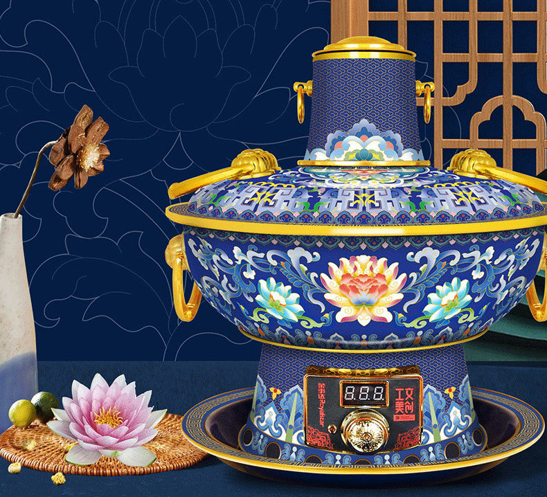 /国礼级“景泰蓝”吉祥纹饰,电炭两用铜火锅~在家享用宫廷盛宴!