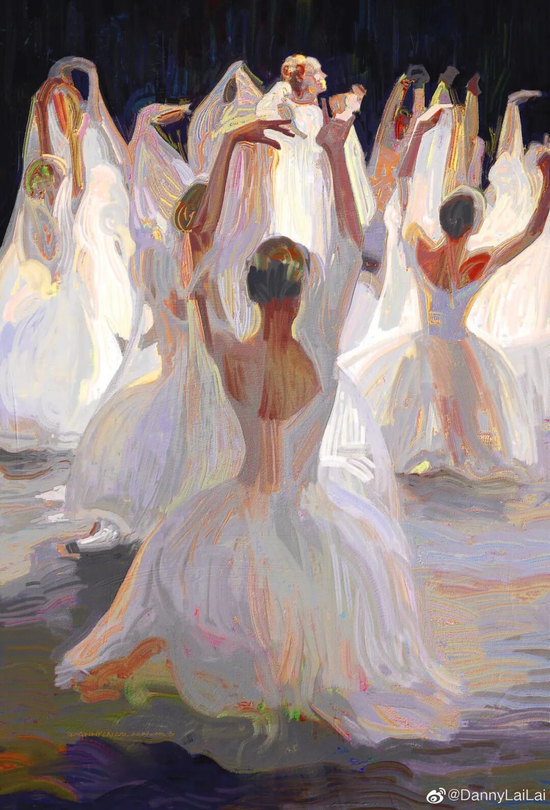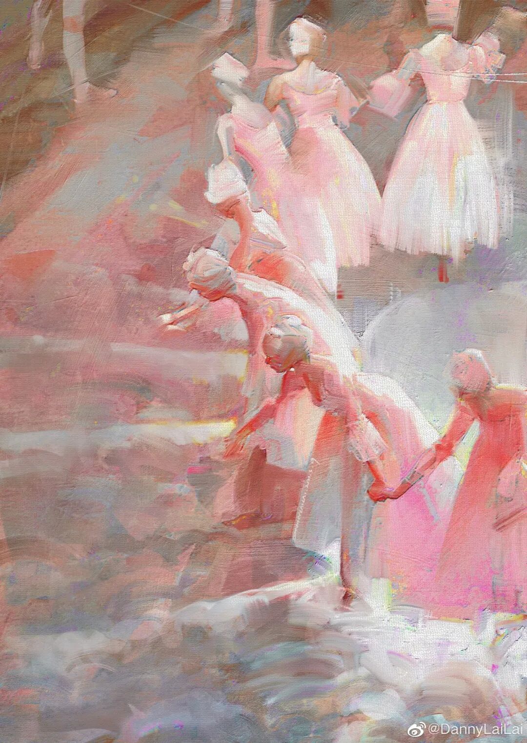 在创作的路上灵感其实也需要不断参考,在数字画圈方面,Danny坦言入坑CG画圈是因为wlop大大,研究了挺久K大(krenz)的色彩,也喜欢柯一正大大画面质感和笔触的表达,在传统绘画方面,偏好吴冠中对画面构成以及颜色的处理,那些印象派画家的色彩和笔触都成为了自己学习的对象,因而呈现出的创作风格也不尽相同。