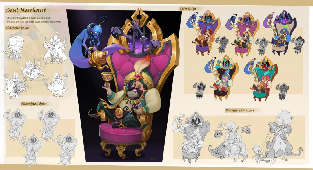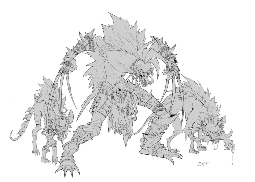大壮如此可爱:我个人比较擅长欧美风格的设计,喜欢暗黑、魔幻的题材~我平时比较喜欢看魔法、暗黑、丧尸这类的电影,也很喜欢收集这类的设定集~我尤其喜欢画怪物,喜欢把他们变形,越画越开心,之前还有朋友问我什么时候能画点干净卫生的?哈哈哈哈哈哈~
