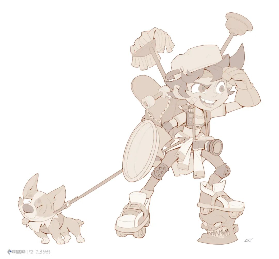 大壮如此可爱:我觉得我在设计一个角色的时候更注重的迭代设计这个环节,草图我一般会画三到四个来试试想法,确定一个之后我就会进入迭代设计,这个是我所有环节中最重要的一个环节,因为从这个环节我要开始注意图形的变化,图形信息的传达是不是清楚,人物的趋势以及角色的合理性和趣味性,这个处理清楚后,后面的线稿、细画就会顺利很多。我一般是看电影或者听小说突然提到某一点觉得很有意思、很有设计点,我就会立马打开手机记下来,再就是还有一个灵感文件夹,平时我喜欢随便浏览图,看到跟我心灵有感应的图,我就会放到这个文件夹里,等下次画东西没灵感了,我就会打开这个文件夹翻翻~