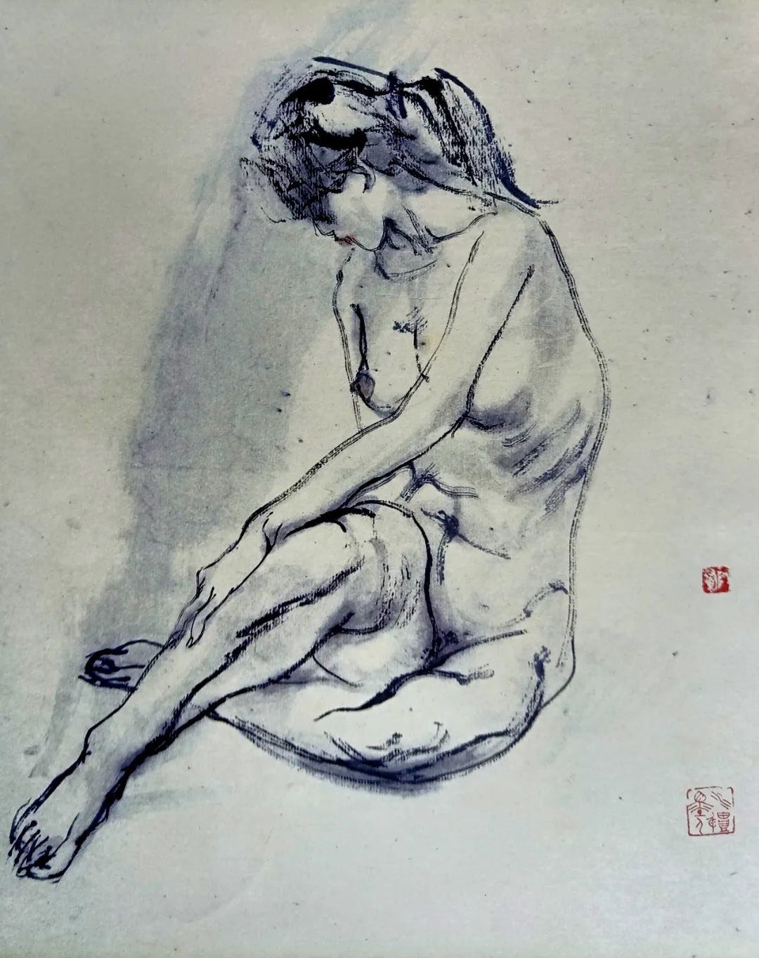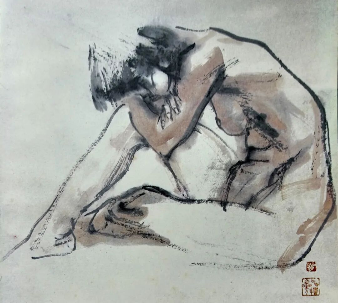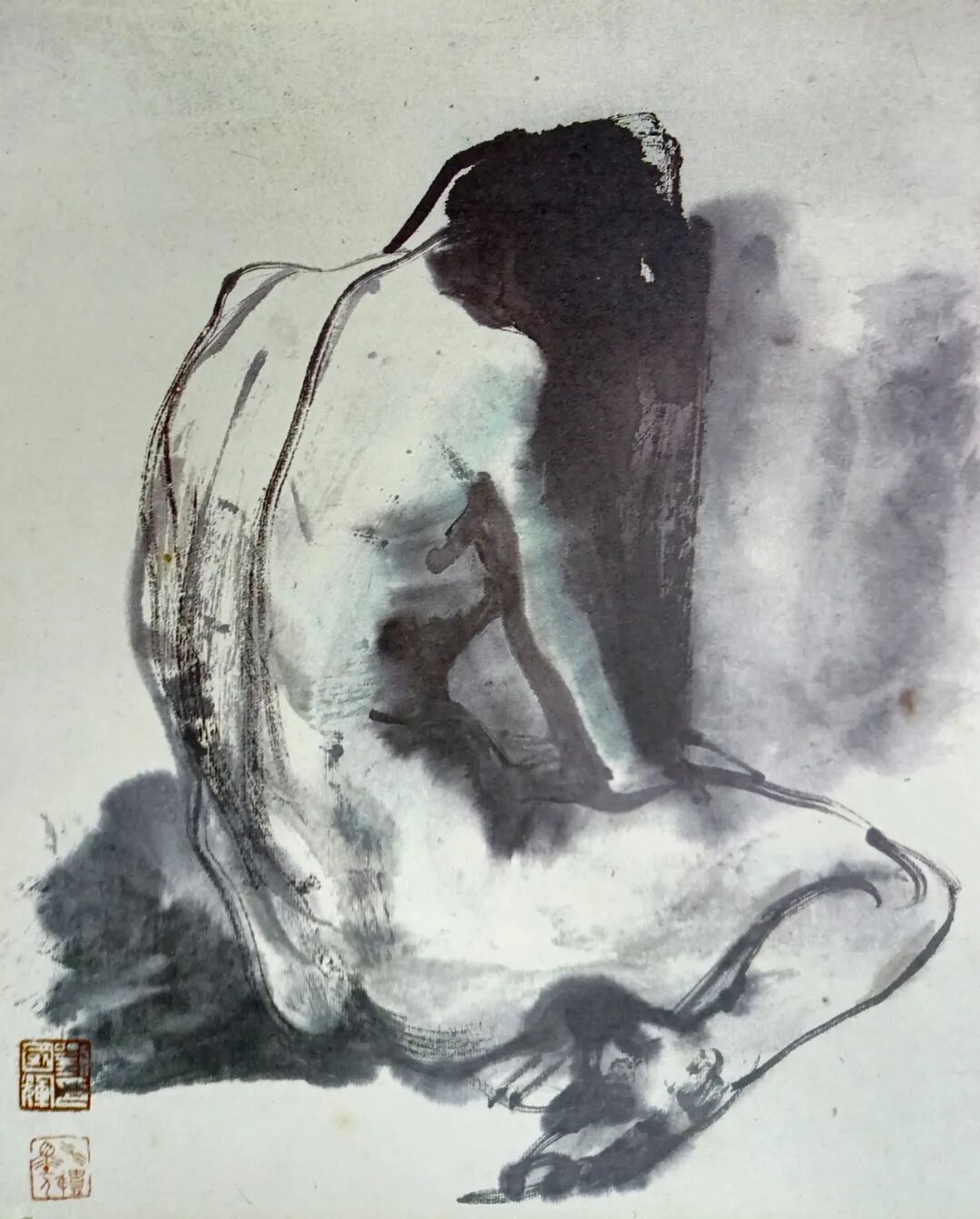 人体绘画的历史已很久远了,但是用水墨意笔的手法来表