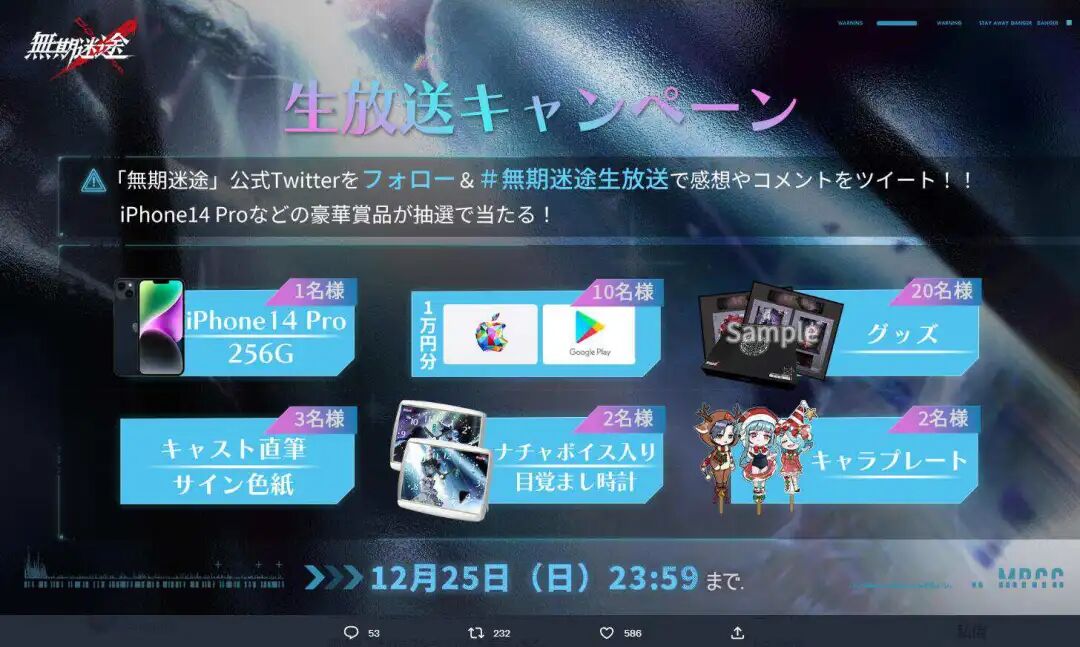 除此之外,只有极其个别的产品做了大额撒钱活动,比如《明日方舟》在开启日服预约的时候,做了一次“50人x10000日元”的抽奖活动。但此后这款游戏再也没做过相似的撒钱活动。