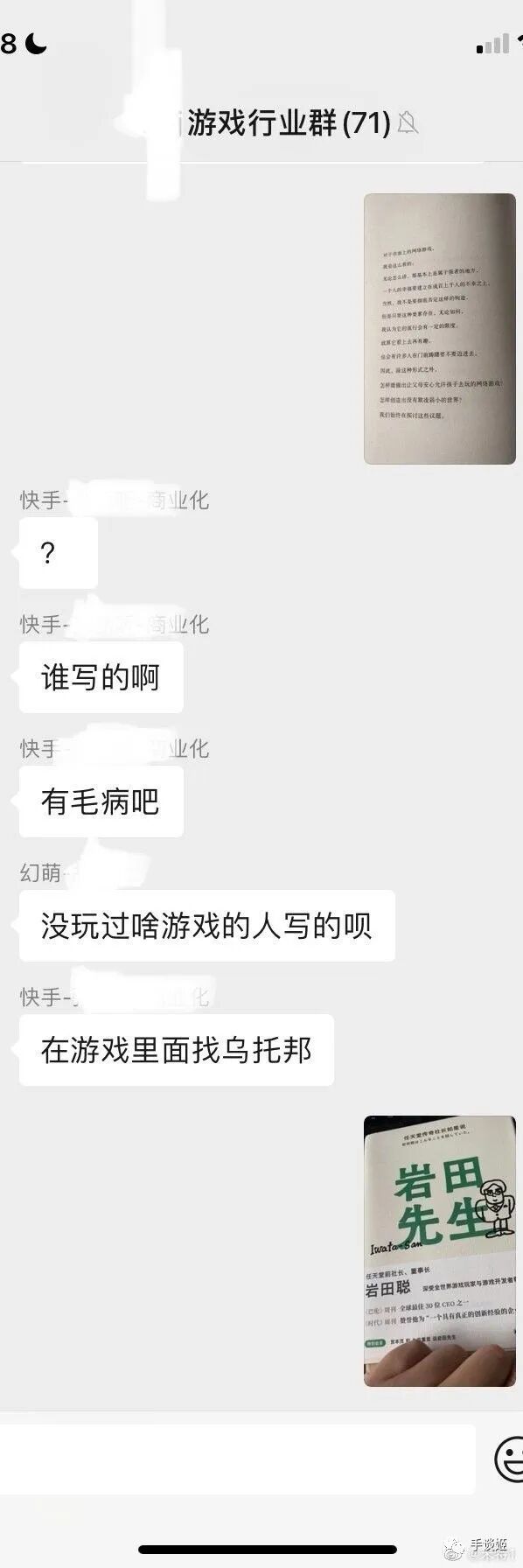 本日下午,原博主又发了一则“快手同学的补充想法”,该快手员工表示……好吧手谈不能完全明白他想表示什么,似乎是:“虚拟的乌托邦会让人沉湎,所以不应该有这种东西。”因为童话都是骗人的,所以不该有童话?