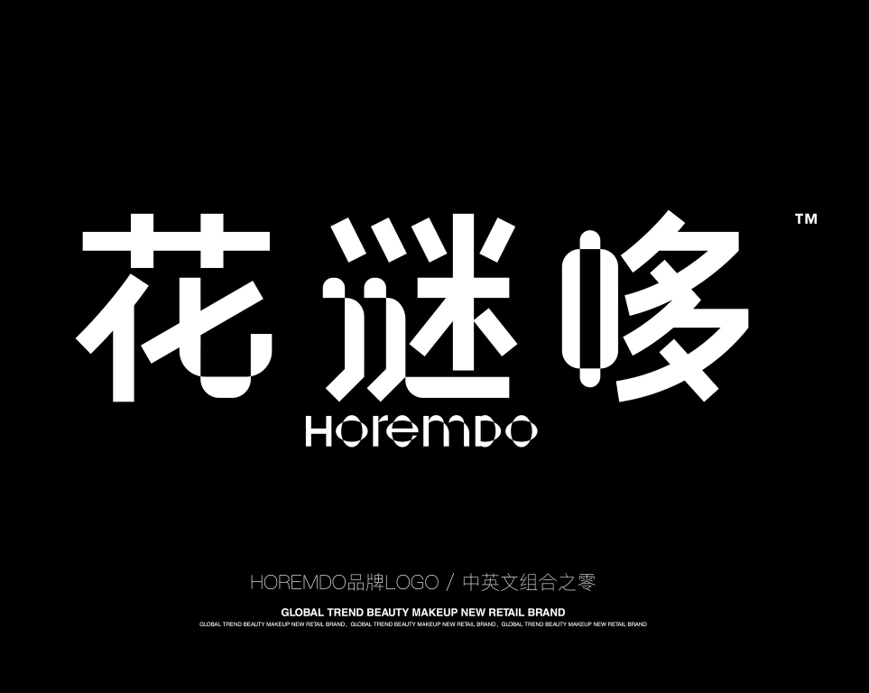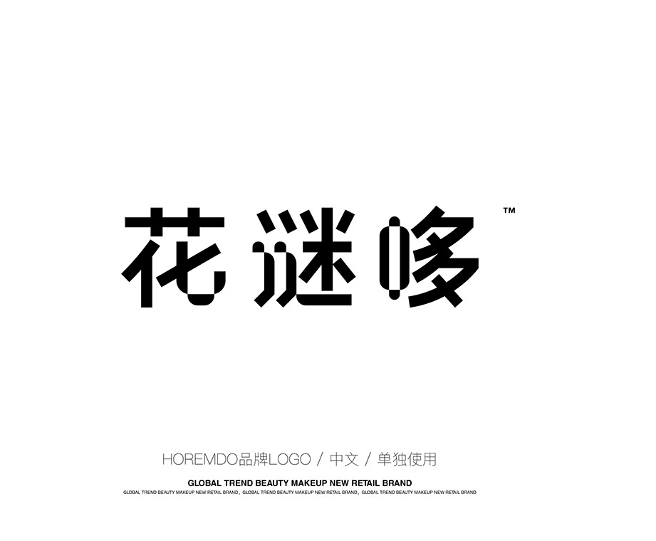 运用潮牌元素像素化概念+独特记忆点+美妆FLOWER特点,最后设计记忆点落在像素化的花朵特点上,中文字体呼应英文字母上的像素化花朵特点,并将字体笔画塑造成与当下年轻人喜好一致的硬朗直接,棱角分明;花谜哆,谜一样未知精彩!