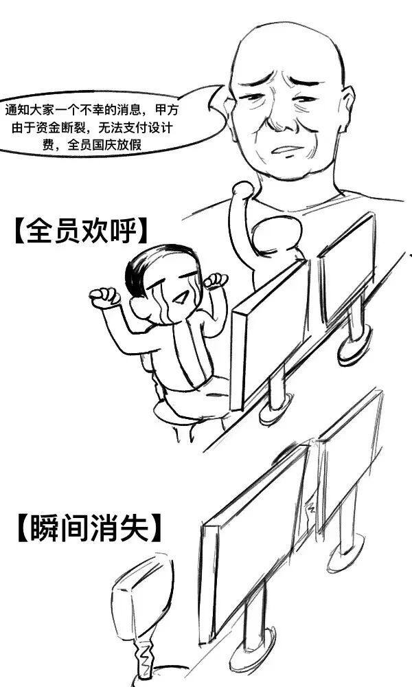 王所上:“通知大家一个不幸的消息,甲方由于资金断裂无法支付设计费,全员国庆放假“