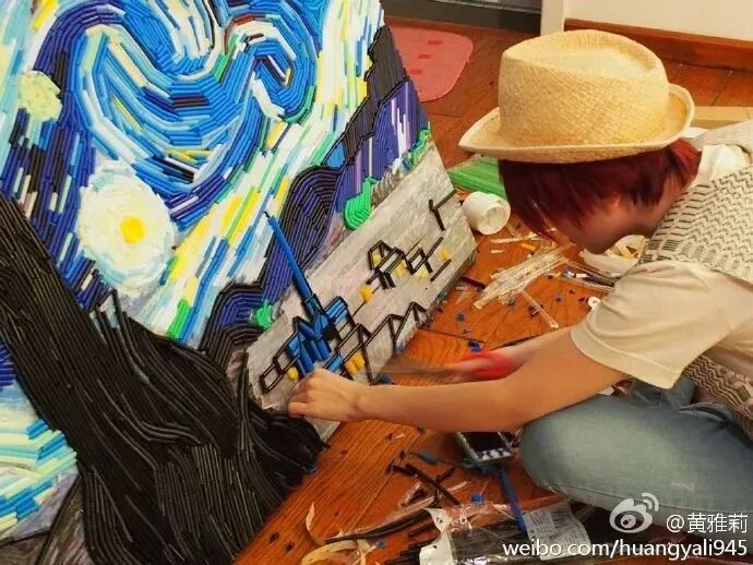将沿路捡拾的废弃饮料瓶,串起来,做成星星灯。