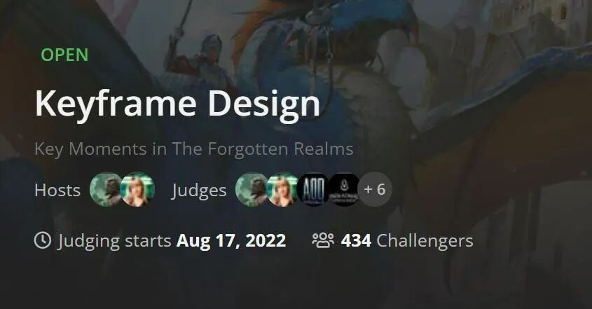 本赛道中,选手需设计4个关键帧,展示奇幻领域中的关键叙事事件。关键帧可以是4个单独的场景(独特场景),也可以是2组顺序关键帧(相同环境中的之前/之后时刻),展示关键故事节拍。这些故事应该发生在我们不熟悉的神奇的世界里,展示我们不熟悉的角色。