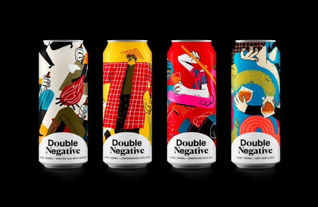 新加坡艺术总监和插画家Kezia Gabriella 为位于布鲁克林中心的美国啤酒厂 Double Negative 开发了这个很酷的图形标识和包装设计。