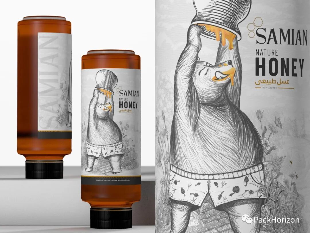 Samian 使用最先进和最新的生产和包装系统为客户提供最好和最优质的产品。Samian 蜂蜜产品在制备和生产阶段具有非常高的质量和创新性和精确性,使我们能够生产出具有最佳和最负盛名的国际标准的产品。出于这个原因,我们需要一种富有创意且有吸引力的包装,以便在展示柜中拥有一个简单而特别的包装,同时在瓶子和标签材料上简单。