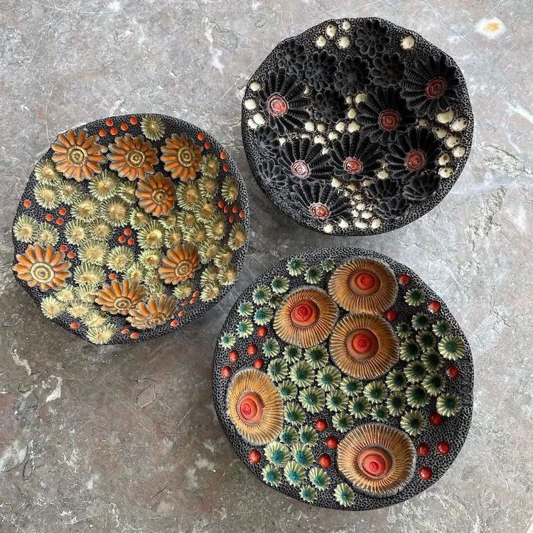 今天小绛要跟大家介绍的这一位来自英国布里斯托尔的艺术家丽莎·史蒂文斯,也在传统陶瓷艺术的基础上,创作了全新的陶瓷雕塑,这些作品中的大多数都是基于盘子和碗的圆形形状,然后在瓷器的表面,被这位艺术家雕刻成大尖刺的矩形或贝壳,有的还长有触角。