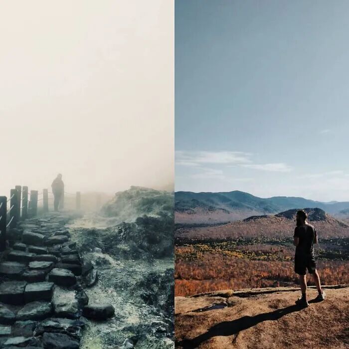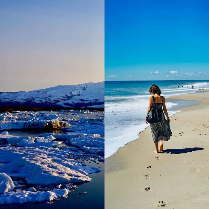 后来她们发现,将各自的旅行照片拼接在一起,似乎另有一番风味。并把这些照片上传到了社交媒体上,意想不到的是引来大批粉丝的追捧。(下面将出现一大波图片)