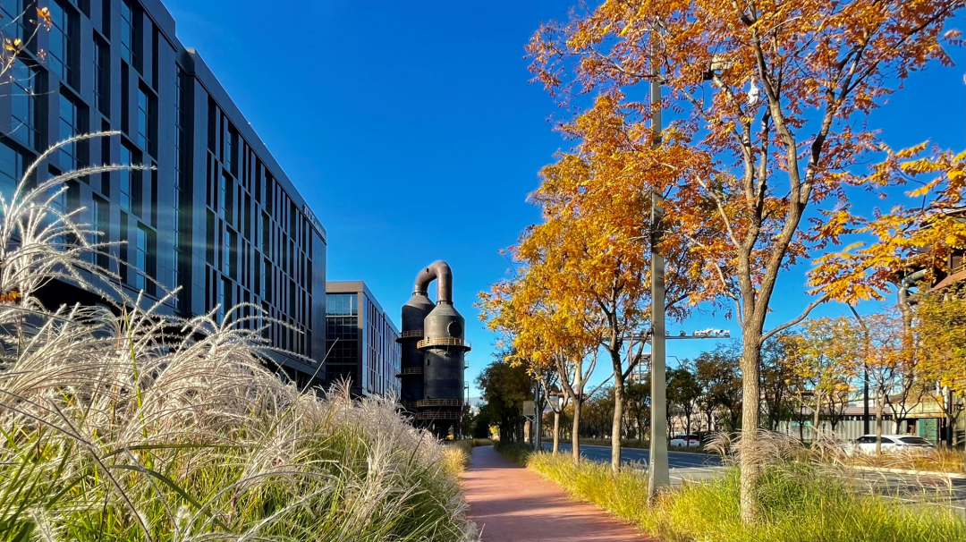 项目中有多处重点保留的工业遗存物,但原有的厂区规划受工艺影响与重塑的场所功能格格不入。草率或过于主观的场地设计将会把仅剩的标识物打散,场地的记忆与情感将会抹杀殆尽。因此景观设计团队放眼更大的研究范围,从空间结构、场地功能、建筑风格、景观形态、场所记忆等多个维度进行剖析。挖掘和重塑大工业时代的印记,并使之成为文化与艺术的核心,同时结合项目的定位打造多功能创意产业园区空间。梳理历史的机理与重塑的功能有机融合,在赋予城市场所新功能的同时讲述着历史的故事。