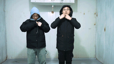 两位同事在-18度的冷库里冷冻20分钟后,同时拉开外套。