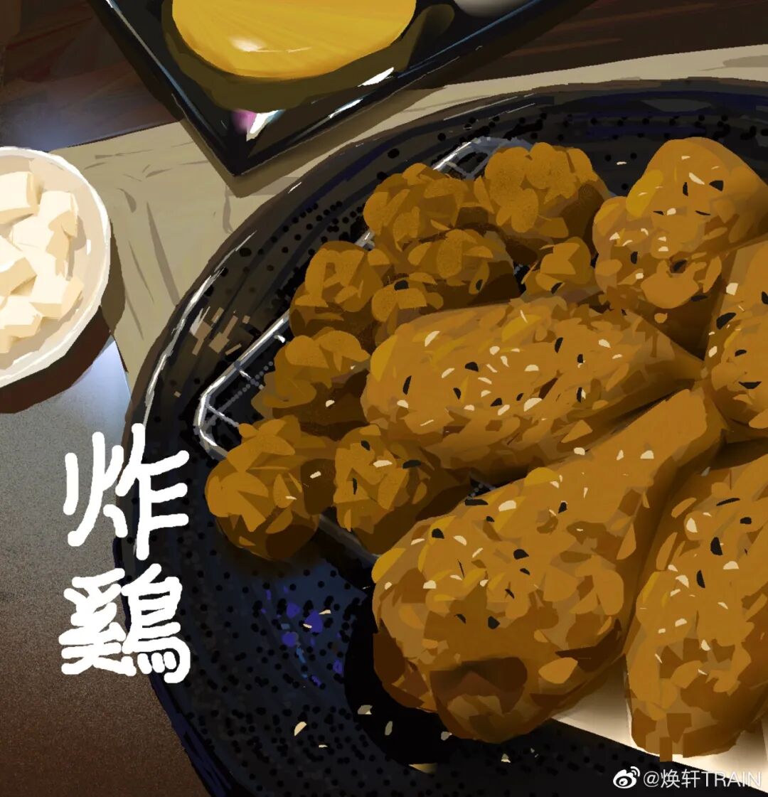 中间还有一个有趣的创作小故事,也是我讲了一百遍了的故事哈哈哈。当时为了实现一个以豆腐为主的场景的视觉效果,下了班就跑菜市场买了点豆腐回家自己做着试试,用勺子挖出造型,下锅油炸,把表面变化的机理记录下来,不仅效果解决了视觉需求,当晚也饱餐一顿。