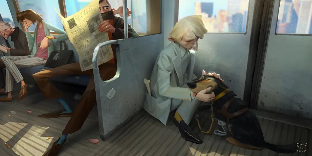 或许只是一只猫路过,或许是一个老人在等绿灯过马路,或者风吹得树叶在鼓掌,这些都会是故事感的由来。通过对这些内容的加工,会让画面更丰富,比如路过的猫远处有另一只猫在等它,过马路的老人身后有一条也很老的狗,鼓掌的树叶上面落了个风筝... 这样一来,也就可以从单一的情节变成有互动性的画面,那么光影跟颜色可以根据这些情节的情绪来设计,是要温馨的还是悲伤的。