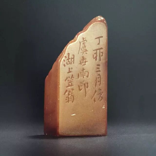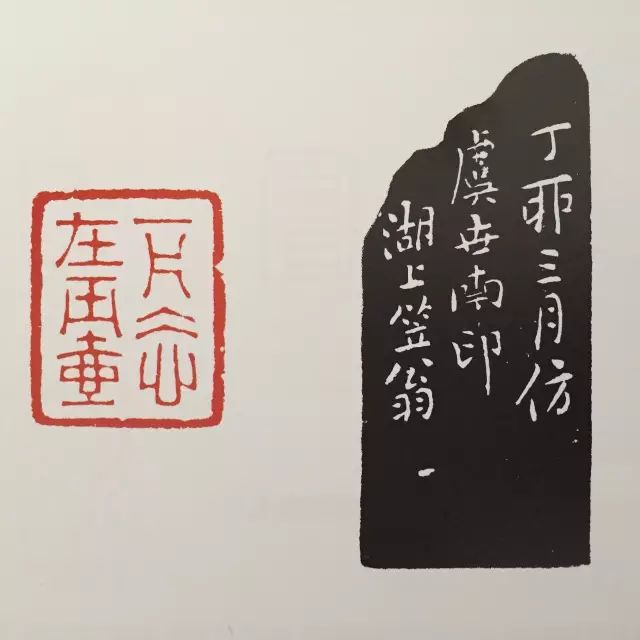 边款:丁卯三月仿虞世南印,湖上笠翁。