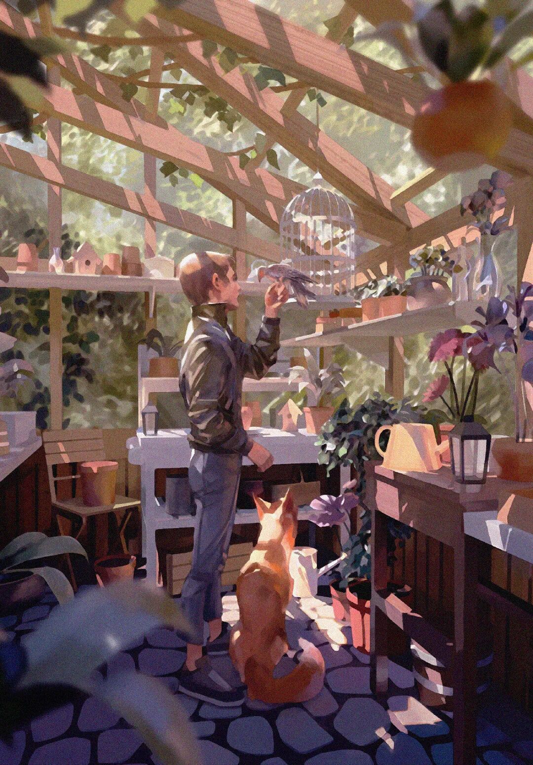 画师大大善于借助光影营造气氛,光影渲染出温馨治愈画面氛围,很有生活感,都显得特别治愈温馨。她诉说的故事充满少年气,故事感超强,画面很有个人风格!你喜欢这一组插画作品吗?