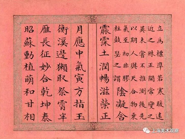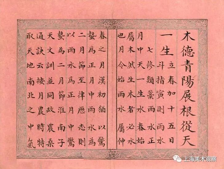 永锡的“雨水”册页可以看到“馆阁气”。宫廷书画的严谨和刻板,除了禀赋和才气的差异,可以看出生活和成长环境。对个人的书画印风格塑造性非常强。其中写道:“木德青阳展,根从天一生。(立春加十五日,斗指寅,则雨水。七修类稿,雨水正月中,天一生水。春始属木,然生木者必水也。月令始雨水,属仲春之月。汉初犹以惊蛰为正月中,雨水为二月节,至律历志,则以雨水为正月中,惊蛰为二月节,《淮南子·天文训》并同,故《农桑通诀》云:‘按月农时,特取天地南北之中气,立为标准。若寒暖远近之殊,正开常变之异,未尝不推测后先,以期人与天合、物乘气至,初非胶柱鼓瑟之谓。’)阴凝舍霢霂,土润畅滋荣。正月应中气,寅方指玉衡。溪边獭取祭,霄半雁长征。妙合乾坤泰,昭苏动植萌。和甘相感召,庶汇叶咸亨。”全册将雨水的来龙去脉,说的很清楚。