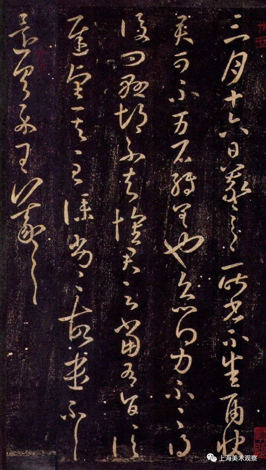 米芾另有《海岱帖》,亦名《焚香帖》:“雨三日未解,海岱只尺不能到,焚香而已。日短不能昼眠,又,人少往还,惘惘!足下比何所乐?”这是米芾任职涟水县令时所作,雨期连绵,有些焦虑。此札乃米芾不多见的草书作品。老米不喜唐人草书而力主回归今人,故成此格调。相比之下,唐代李阳冰《城隍庙碑》则是求雨心切:“有唐乾元二年秋,七月不雨,八月既望,缙云县令李阳冰躬祷于神,与神约曰:五日不雨,将焚其庙。及期大雨,合境告足。具官与耆耋群吏,乃自西谷迁庙于山巅,以答神休”。李阳冰担任缙云县令时求雨,“与神有约”,雨来或不来,要么焚庙,要么迁庙,足见其心之坚。此时“冰篆”面目已成,确立了在篆书史中不可动摇的地位。