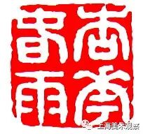 杨澥所刻“雨中春树”出自唐王维诗:“云里帝城双凤阙,雨中春树万人家。”此印边栏较残,笔画逼边,形成特殊的艺术效果,运刀起伏较大,笔画相对较细,红面醒目,对比强烈,营造出美妙的意境!