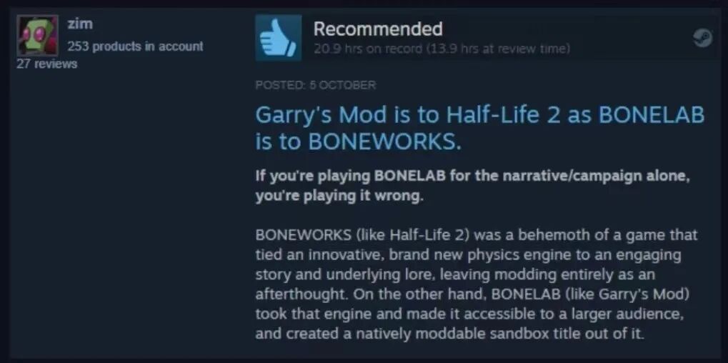 通过翻看玩家对《BONELAB》这款游戏的评论,大家有数百次提到游戏的一个特殊方面: Mod。