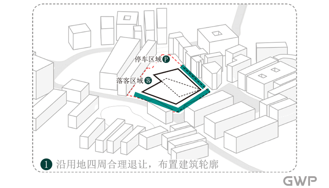 项目方案基于周边环境、建筑布局、用地条件局促的现状,设计团队在对比多种设计策略后采用“空间退让和体量控制” 的手法来呼应曾宪梓先生一生视事谦逊的品格,使纪念馆与喧闹的街道之间留出必要的过渡空间消解场地尖锐的问题。