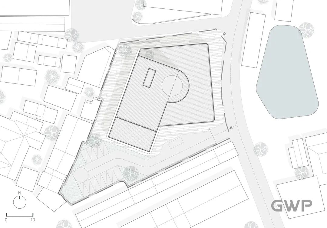 并且通过首层立体架空渗入居民的日常生活,实现对周围社区的开放边界,让居民可以在纪念馆所辖的立面空间中穿行、游憩,纪念馆因此成为一个自由的日常公共空间。