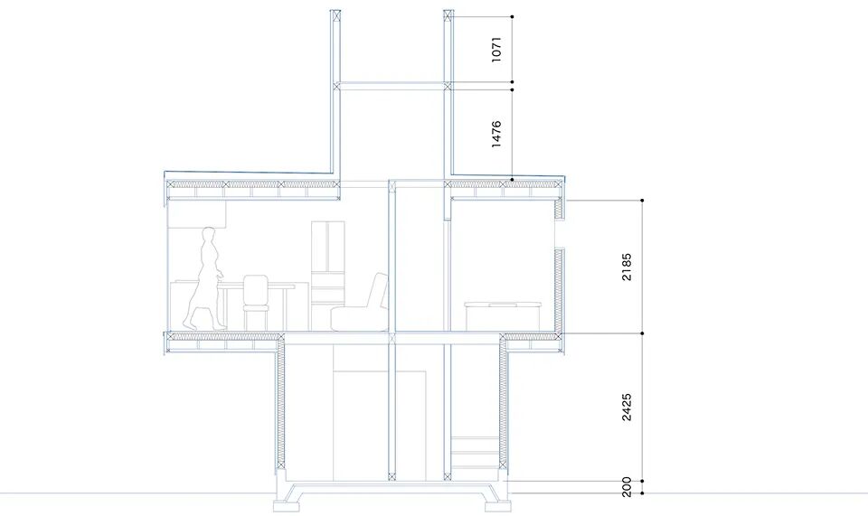 作品集2024-01-11 G住宅 G住宅 建筑类型:住宅 项目面积:66 m2 设计公司:kurosawa kawara-ten Architect 项目位置:千叶,日本 项目时间:2022 项目坐落于日本千叶郊区独立住宅小区陡峭的边缘地带,是kurosawa kawara-ten事务所为一对老夫妇设计的周末别墅住宅。 场地中的树木与植限制了住宅的建造范围,因此设计团队采用悬臂结构打造二层体量大于底层体量的建筑形式,卫生间浴室等用水设备空间被规划在紧凑的底部楼层中,客厅等生活起居空间则位于二层。 建筑室内 平面图 立面图 剖面图 编辑 / 筱十九 审稿 / 筱十九 本文来自微信公众号“建筑手记”(ID:DongXiXiaoYuanStudio)。大作社经授权转载,该文观点仅代表作者本人,大作社平台仅提供信息存储空间服务。 TAGS: 住宅建筑空间设计项目 相关文章Kleoniki Andr…这是大王Day.281获奖作品《2020最佳图书…精选头像|搞怪来袭!安东尼奥·布埃诺 作品配色清新梦幻的场景插画,充…美国Jennifer Mc…【小鹏设计】设计小改/动力…【首发】地点空间丨打破空间…谢商家不坑之恩!只骗有钱人…