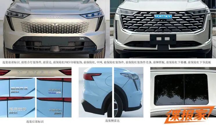 新车外观采用了最新的设计风格,前脸采用类似无边界式的前格栅突出科技感,前大灯采用“7”字型很有辨识度,车下包围处我们还能看到“PHEV”字样。此外,根据此前曝光的申报图和官图等信息来看,新车还将会有双前脸设计,另一款前脸设计将采用大尺寸格栅,看上去更加野性。