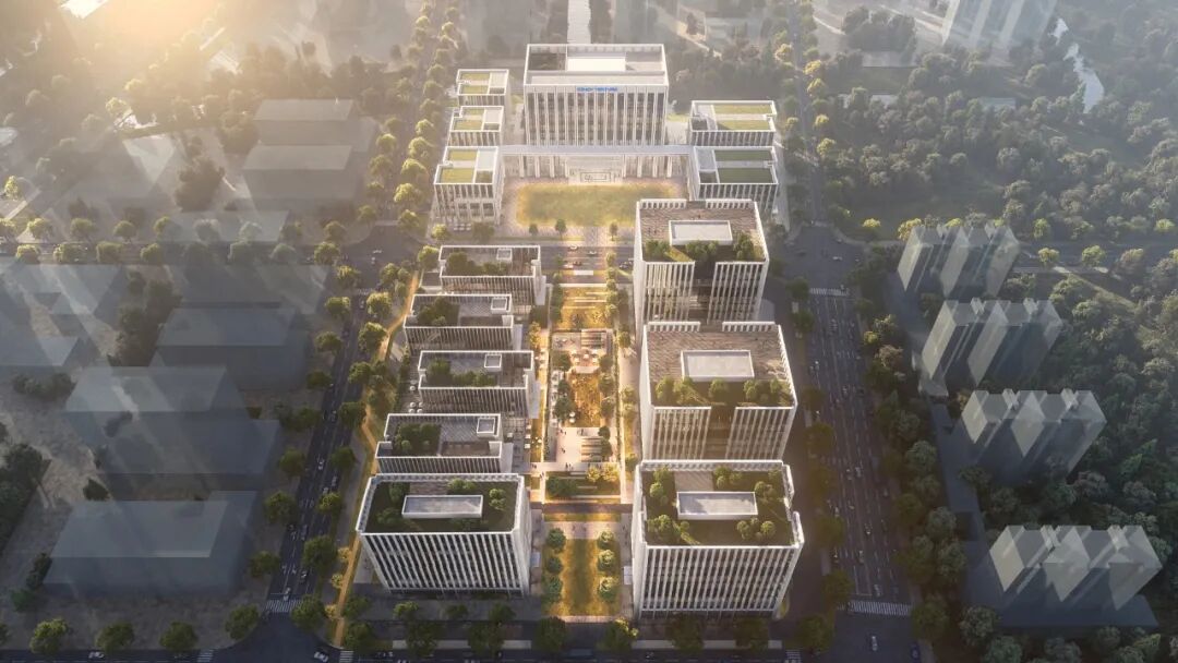 项目坐落于上海市松江区长三角G60科创走廊的规划带上,是上海市十四五规划乃至整个长三角一体化的重要节点与发展方向。产业园区位于洞泾镇人工智能产业基地,规划建筑面积为20.3万平方米,项目总投资40亿元,由FTA操刀设计。