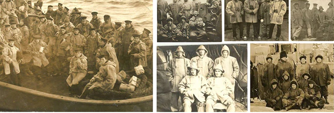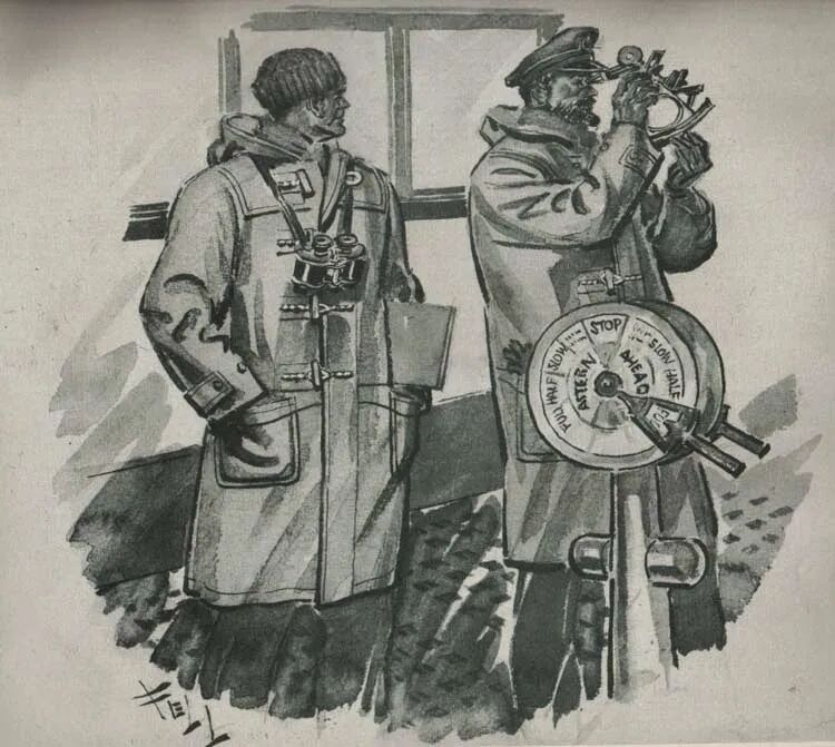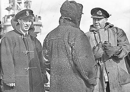 这两张随处可见的照片,第一张来自一战时身着DUFFLE COAT的船员,而第二张则来自于二战。