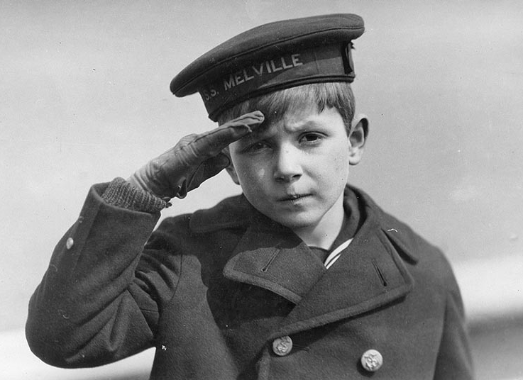 这是历史上1919年4月拍下的一张照片,片中这名叫做WILLIAM SIMONS JR的孩子,正向着他的父亲,也就是ADM WILLIAM SIMONS敬礼