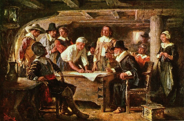 ("五月花号契约”作者:Jean Leon Gerome Ferris),可以说是102个清教徒,拉开了美国历史的帷幕