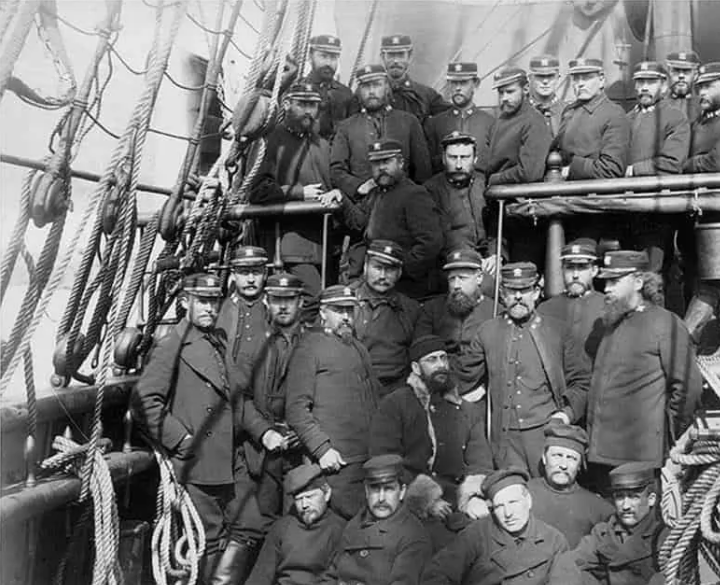 图1为1884年的美国海军,这时已经从英国皇家海军那里引进了PEACOAT,而图二则是1945年时著名的经典时刻