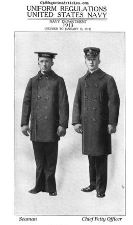 种种贴心的设计与举措,不仅让PEACOAT大衣获得了英国皇家海军们的一致认可,并被他们频繁地穿着,同时也在19世纪的末期,传到隔壁的美国,并由美国海军进行了改良,作为了他们海军的穿着。