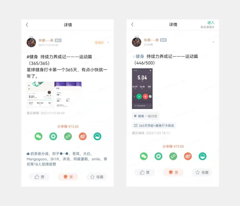 回顾这一年,收获颇丰。这一年多在彩云的星球里通过打卡提升了很多,学习到了很多自己不了解的知识,每天在星球里看大家分享的内容,无论是设计、思考、面试、作品集方面的,跟大家学习到了很多。
