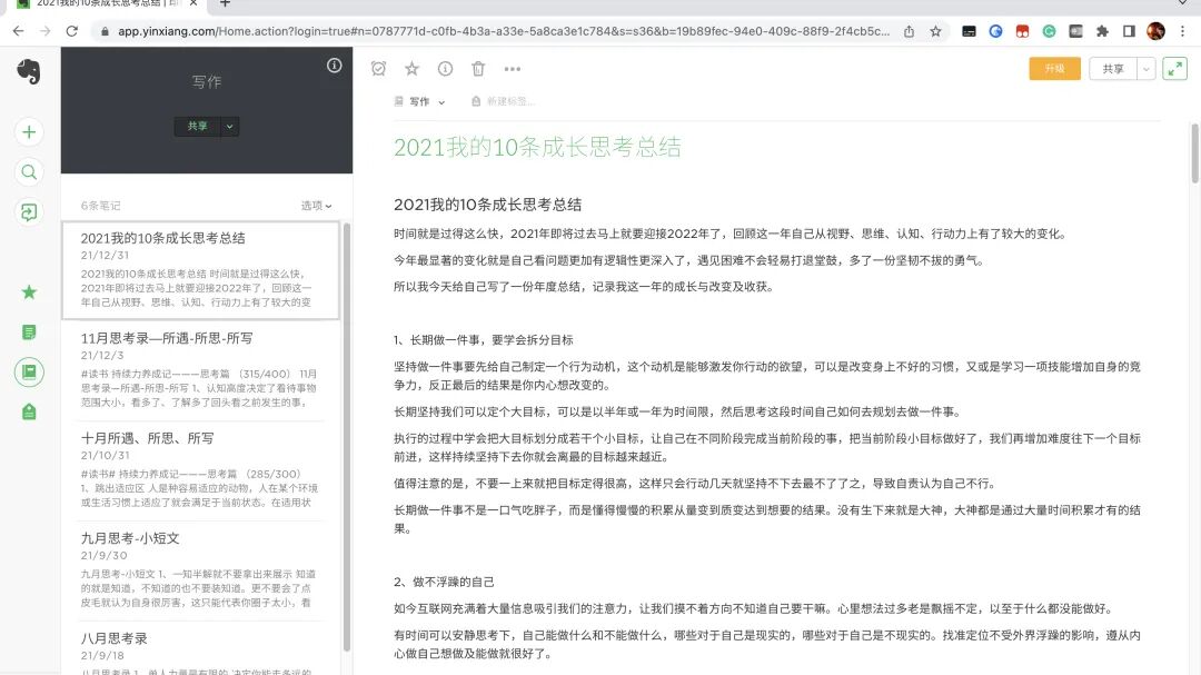就这样坚持了很长一段时间之后,再回头和以前的自己对比,感悟最深的是我的理解能力、表达能力与认知有了明显的提高,很多东西理解起来感觉更轻松了,与人沟通也更加自然,最重要的是我写作的能力得到了很大的提升,从以前一段话都纠结半天到现在可以写长文了。