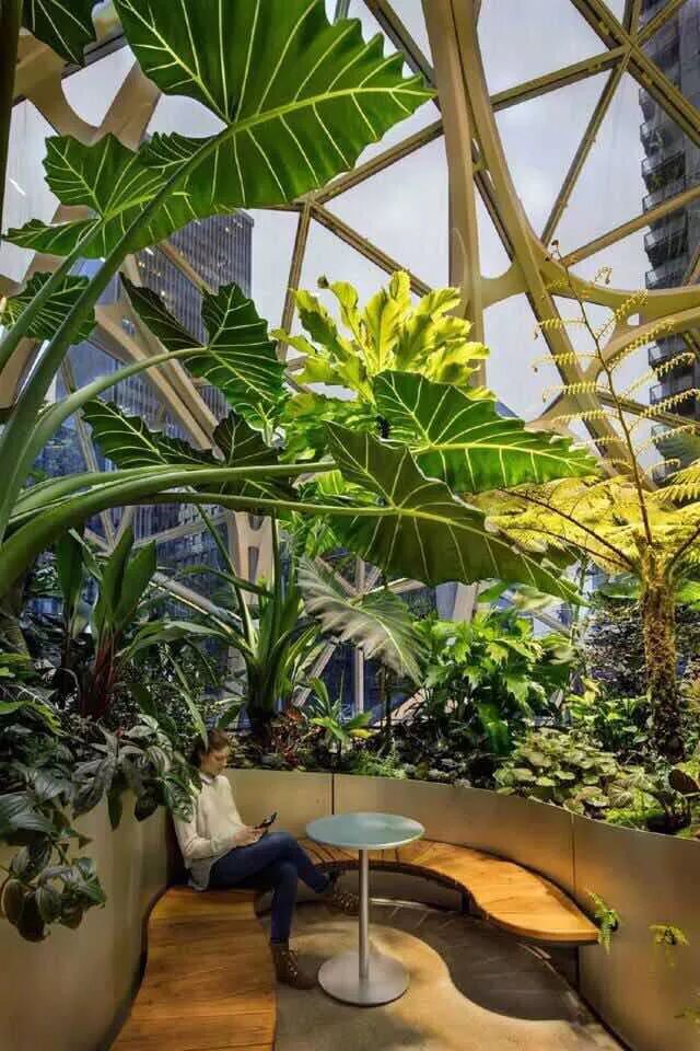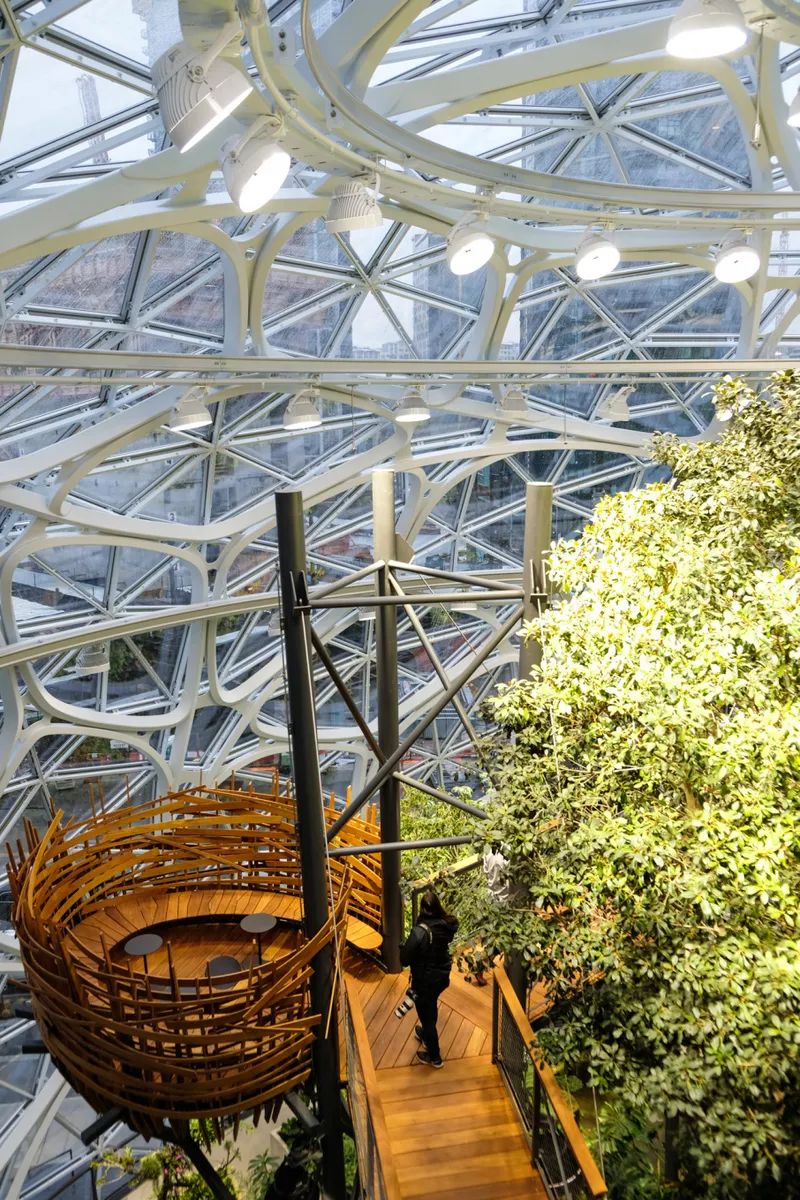 据说,最初建造 The Spheres 是为了让亚马逊的员工有一个可以暂时逃离邮件、工作、报告和 deadline 的地方,让他们可以在溪边的石子小径上放空自我,在来自南美的大树下闭目休憩。当然以高标准的企业文化著称的亚马逊,也希望 The Spheres 如此优美舒适的生态环境能够让员工更好地沉思和迸发出灵感的火花。