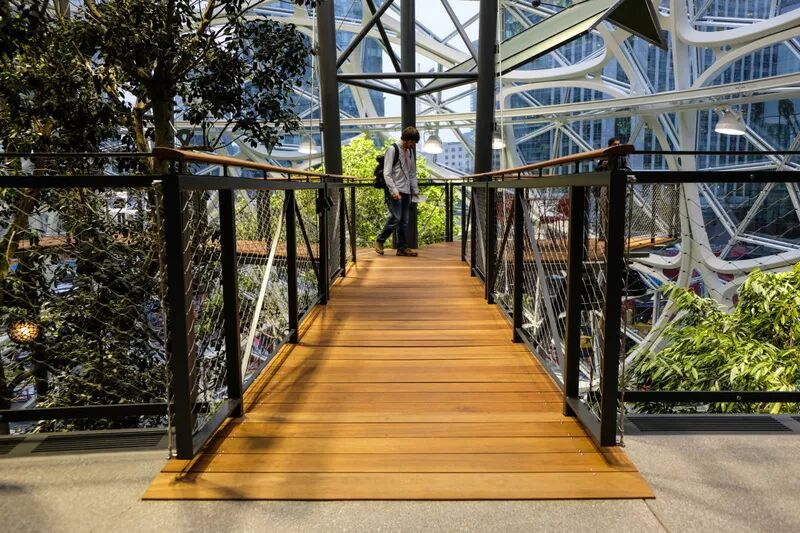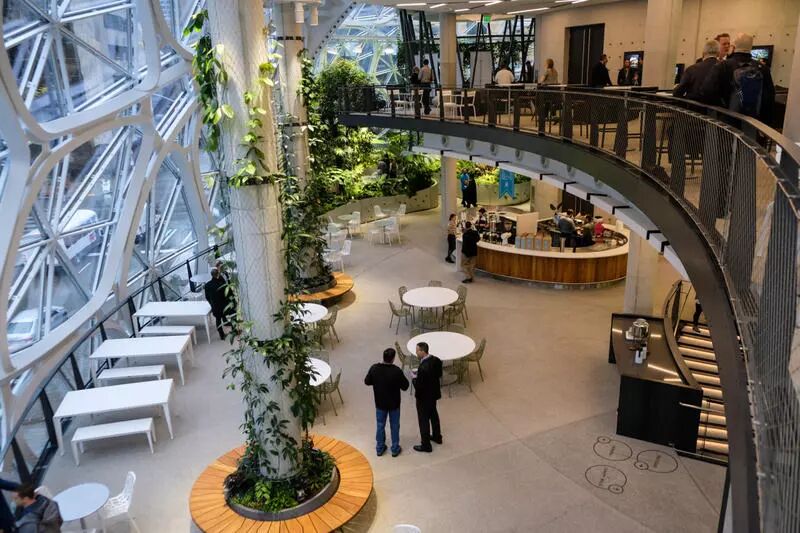 亚马逊全球不动产及设施副总裁约翰·斯科特勒(John Schoettler)表示, 整座建筑可以同时容纳800人。它除了是一个类似公园的空间外,员工们也可以在里面上网充电。
