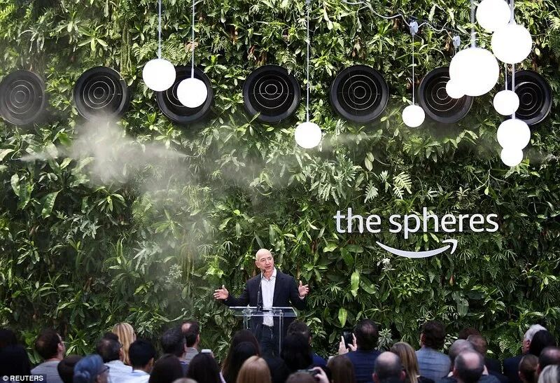 电商巨头亚马逊刚刚揭开了其在美国西雅图市中心新总部Spheres的神秘面纱,据说耗资高达 40 亿美金,包括斥巨资建造的“绿色天堂”——迷你热带森林,让这些建筑变得充满生机。亚马逊从世界各地的温室里收集植物,并将它们带回西雅图。河流、瀑布和高耸的绿色墙壁,都能让员工进入像热带森林的宁静空间,他们可聚集在“树屋”里工作,被自然美景所包围。Spheres可以容纳大约800名亚马逊员工,他们对新总部感到非常兴奋,大约4月份就能入住。
